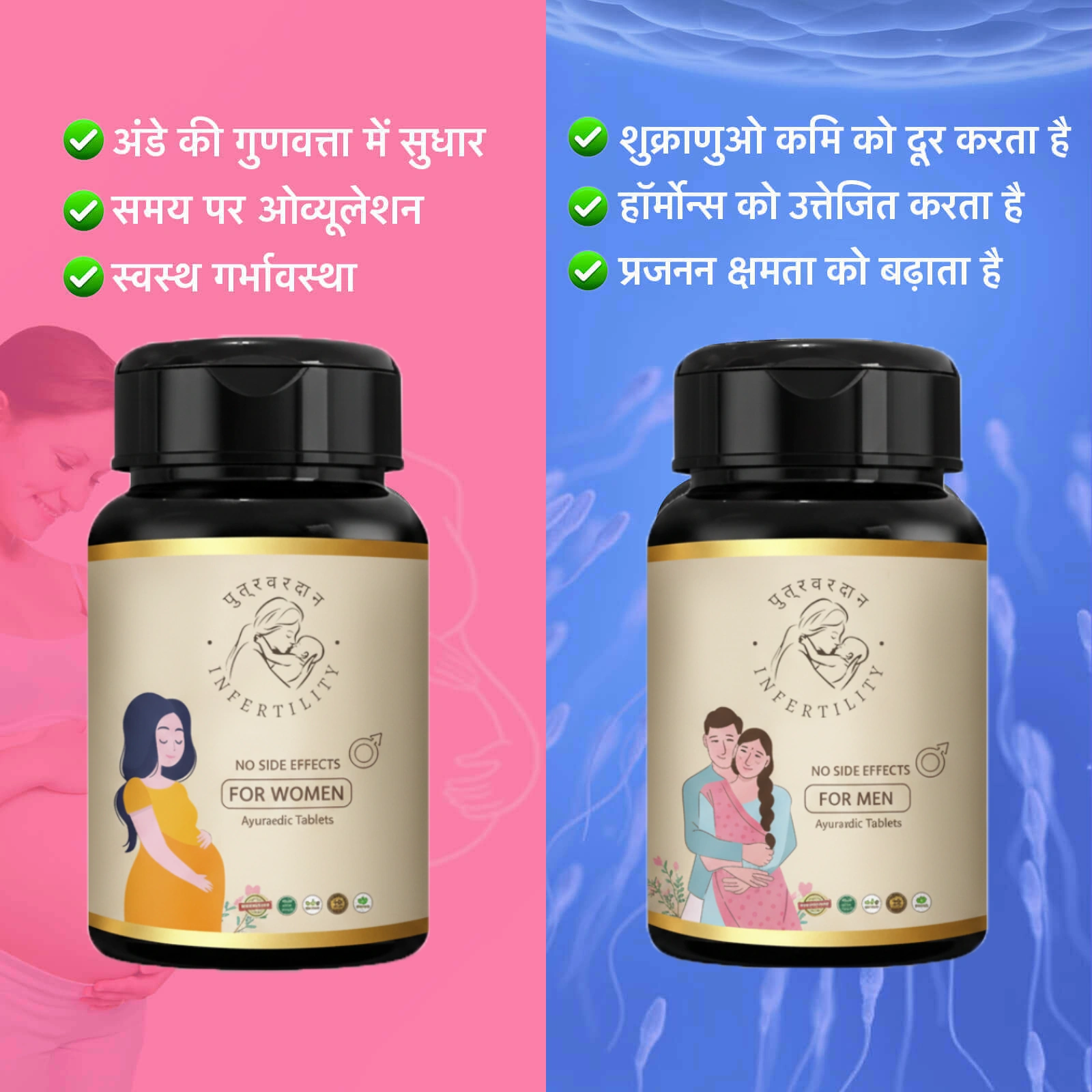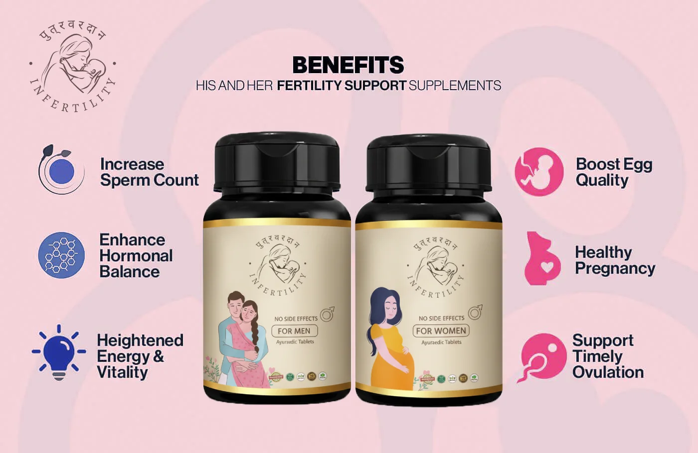 पुत्रवरदान द्वारा फर्टिलिटी फॉर्मूला प्रजनन प्रणाली को मजबूत करता है, गर्भावस्था के स्वास्थ्य को बढ़ाता है, अंडे की गुणवत्ता में सुधार करता है, गर्भाशय की परत का समर्थन करता है, और प्राकृतिक की बेहतर संभावनाओं के लिए हार्मोन को संतुलित करता है।